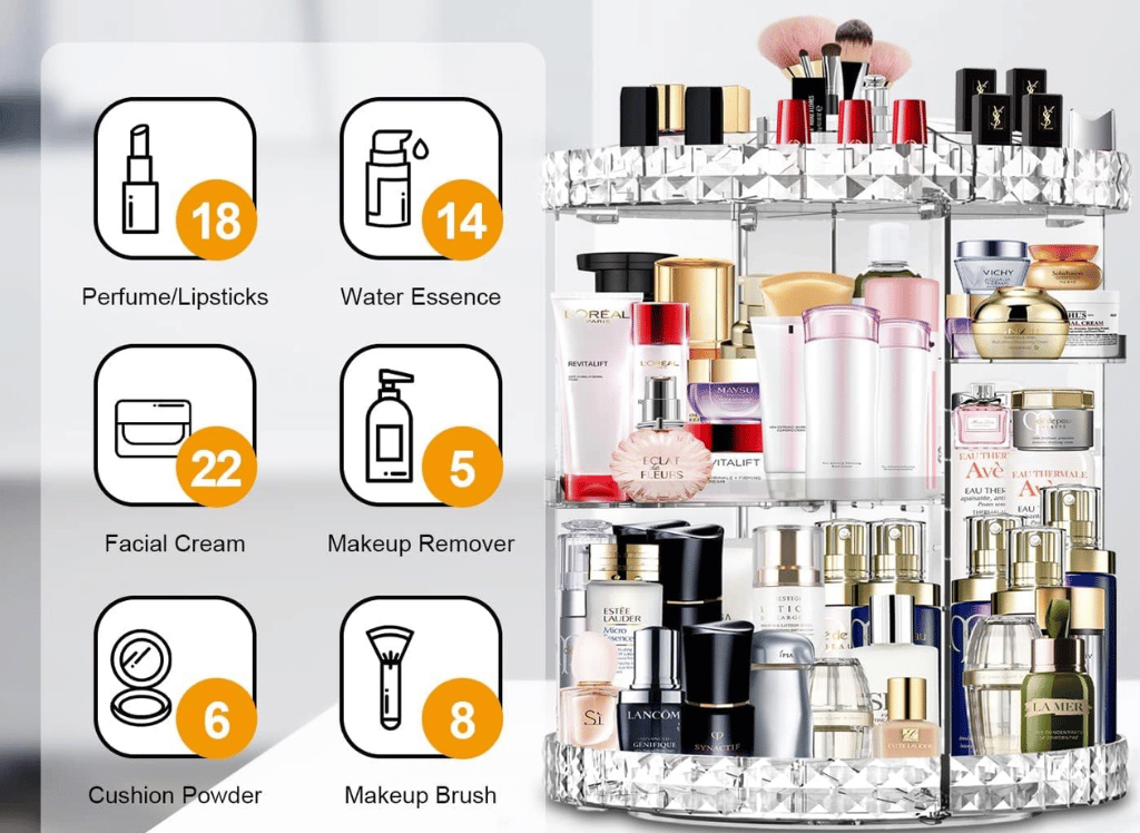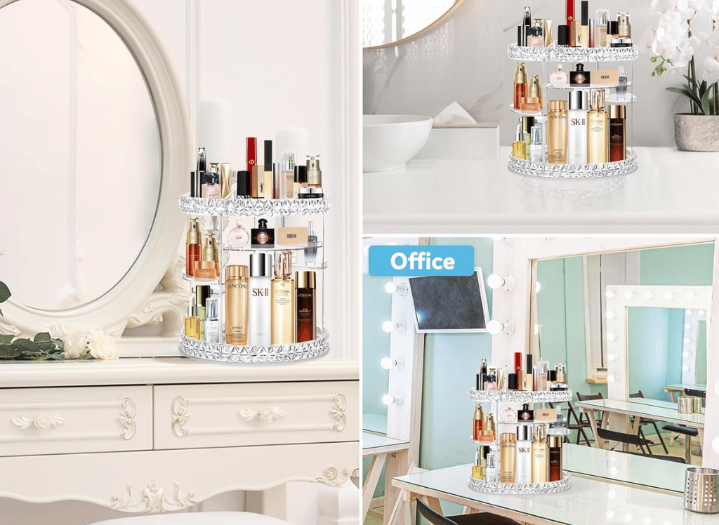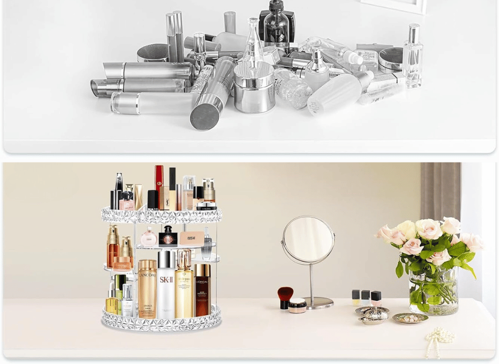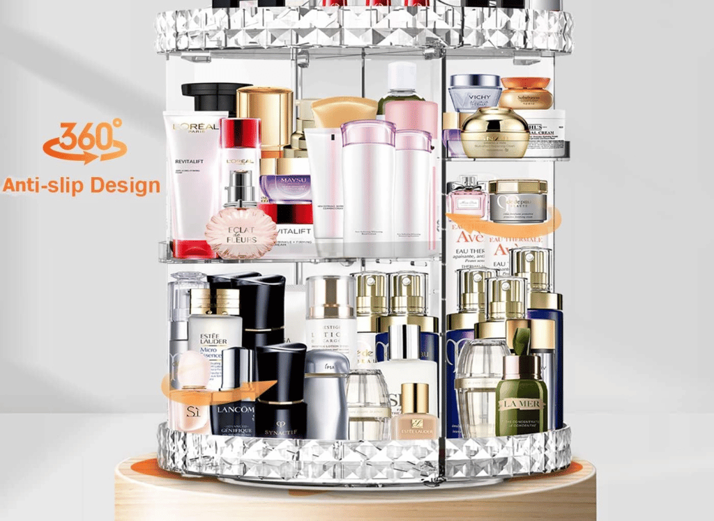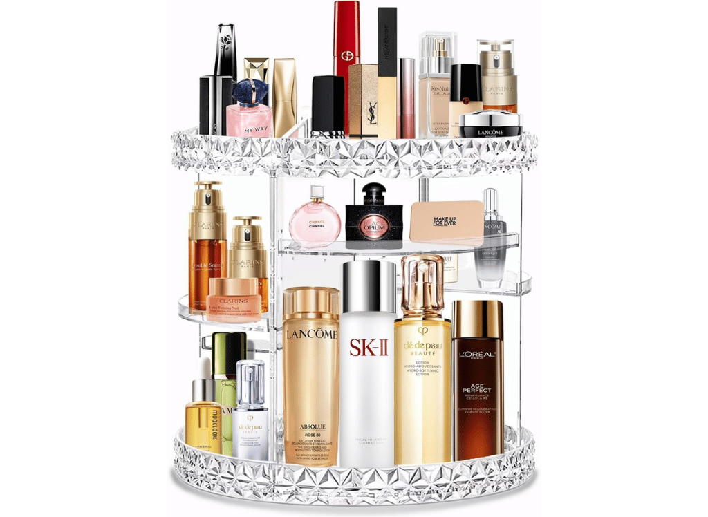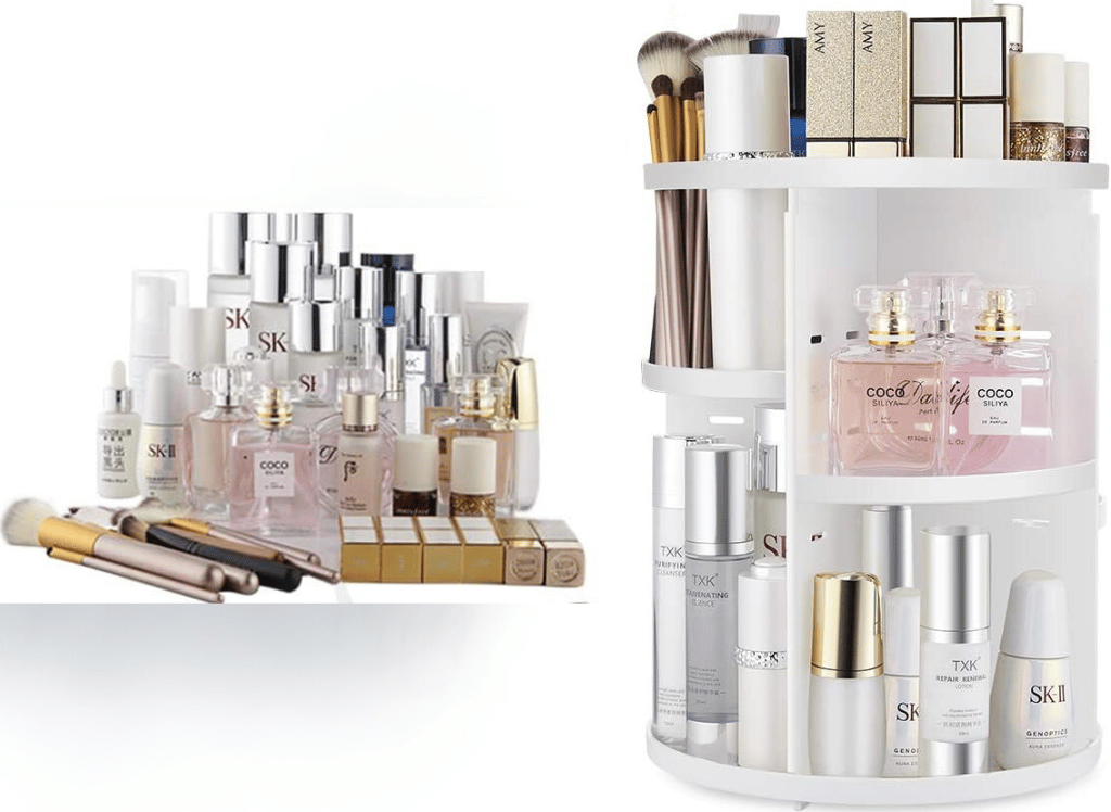 Featuring a 360° rotating design, this makeup organizer allows you to easily access all of your skincare items, perfumes, primers, lipsticks, makeup brushes, and eye shadows in just seconds. No more rummaging through drawers or shelves trying to find that one specific product.