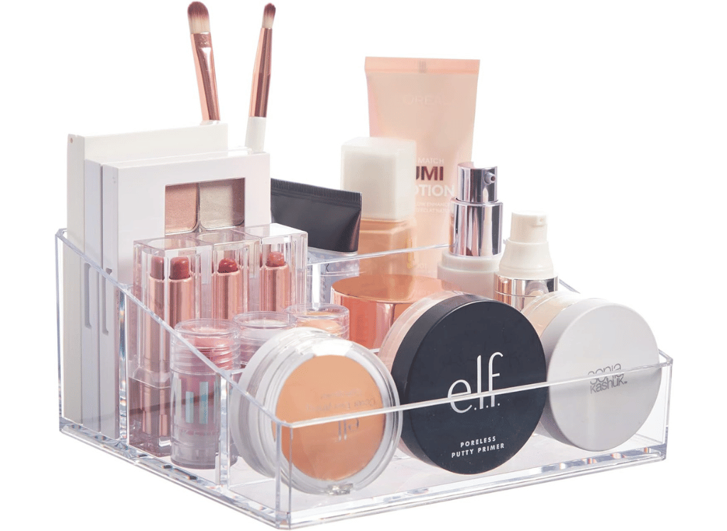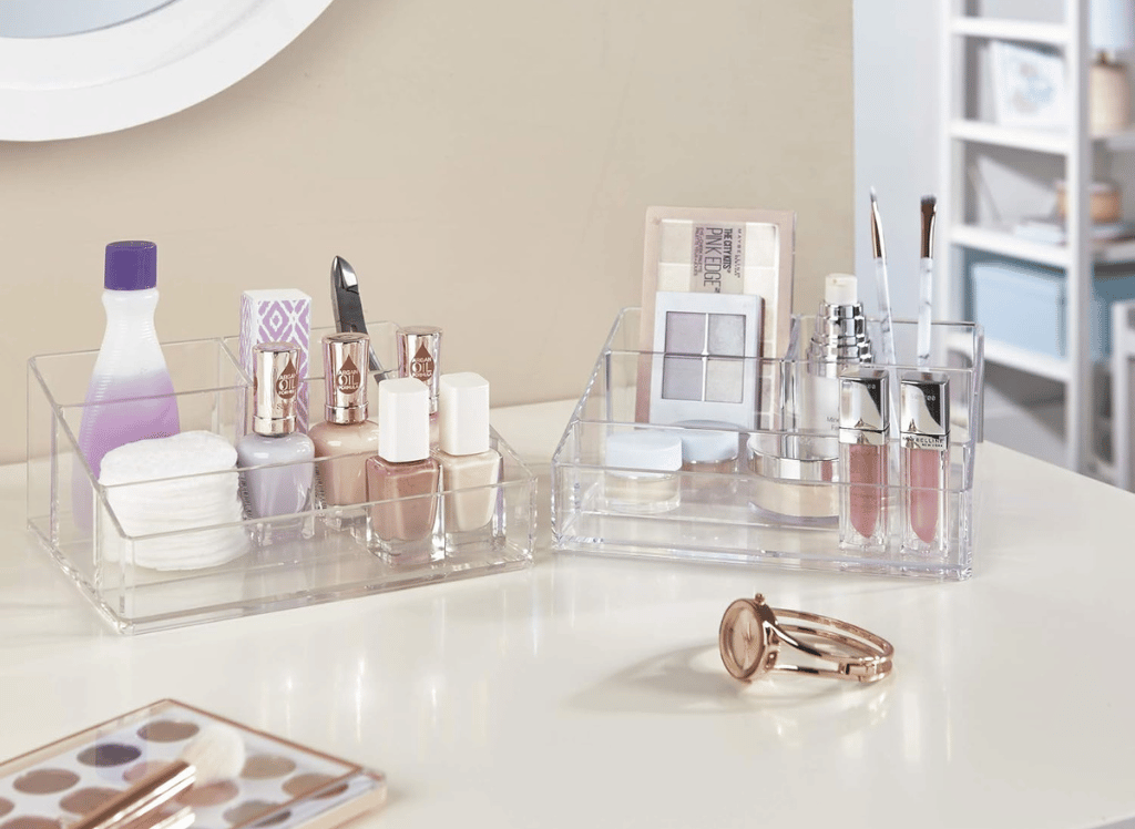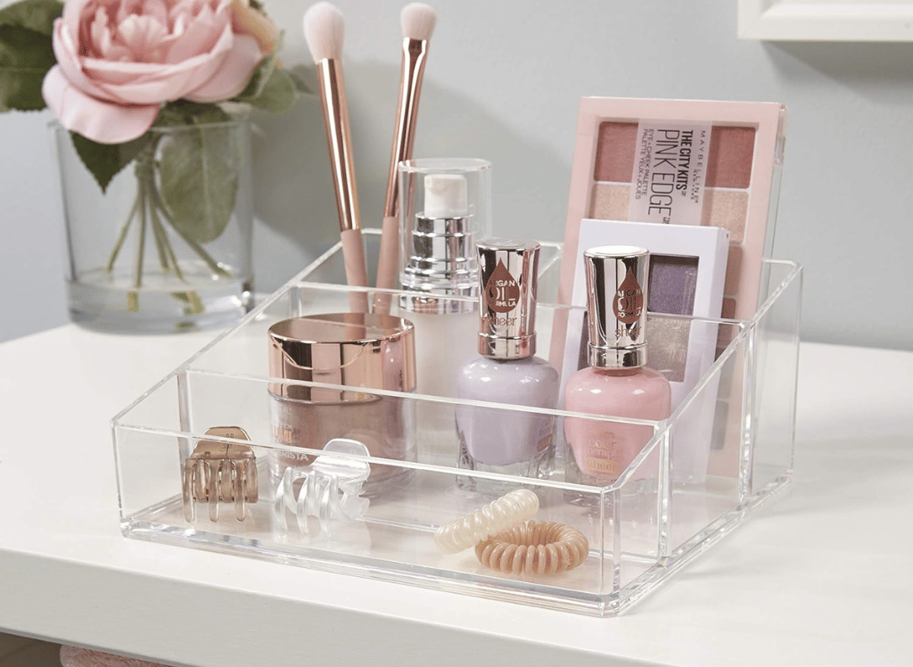 Plus, its high-quality, durable BPA-free clear plastic ensures it lasts for years. Clear up your bathroom countertops and declutter your vanity area with this compact organizer. A 4-compartment cosmetic holder is the perfect size for storing daily essentials around the home, from dressers and vanities to craft desks and closet shelves. And with its compact dimensions of 7" W x 6" L x 3.13" H, you won’t have to worry about it taking up too much space.