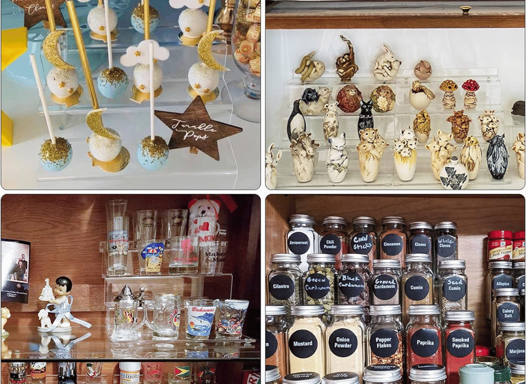 But that's not all! The bigantss Clear Acrylic Display Riser Shelf is made with highly purified and thick acrylic sheets, making it not only sturdy but also visually appealing. The bigger and sturdier cylindrical feet also add to its stability, making sure your perfumes are safely displayed. Not only is this shelf strong, but its design is also practical. The cylindrical feet feature non-slip mats, ensuring that your shelf stays in place and your perfumes stay upright.