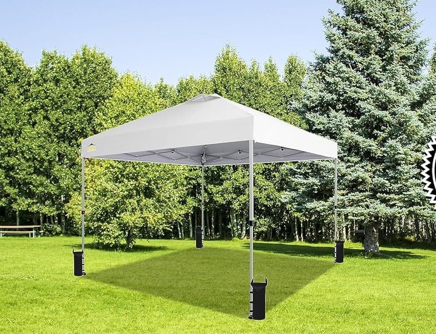 - Portable shade like the CROWN SHADES 10x10 Pop Up Canopy. With one-push setup and a silver-coated top, itâs perfect for sun and light rain protection. Plus, it comes with a convenient STO-N-Go cover bag for easy transport.