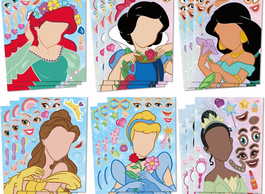 Surprise and delight little princesses with our magical 36Pcs Make Your Own Princess Toys Stickers Sheet! These fun stickers encourage creativity and imagination at any princess birthday bash. Each pack includes 6 different sheets with interchangeable princess faces, hair, crowns, accessories and more in dazzling full color. Combining facial features is a blast thanks to our innovative sticker material that prevents ripping or tearing when rearranged. No worries about perfectly placing small stickers the first try! Unlike flimsy traditional stickers, these durable beauties hold strong on smooth surfaces for unlimited royal remixes. With 36 toy stickers to mix and match, the enchanting princess possibilities are endless!