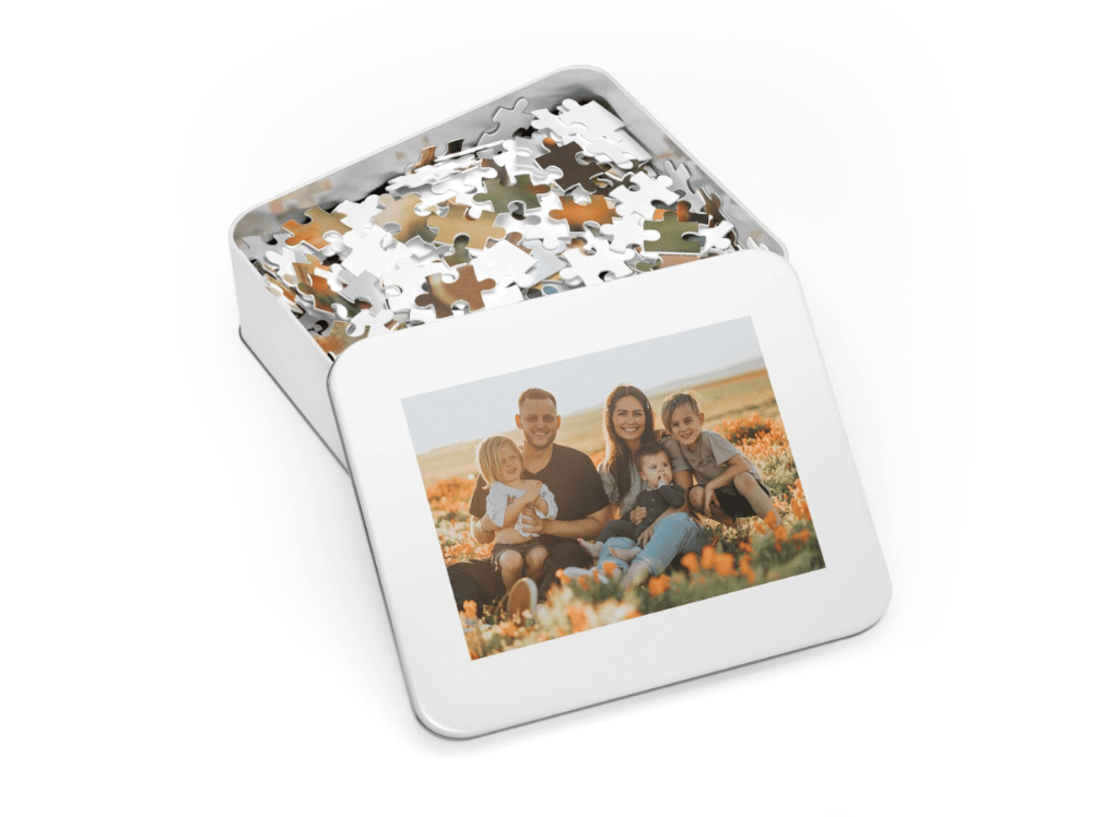 Choose from five sizes of jigsaw puzzles in metal tin boxes (30, 110, 252, 500 and 1000 pcs) or four sizes of jigsaw puzzles in paper boxes (110, 252, 500 and 1014 pcs). For those looking for larger options, the 252-piece puzzle or bigger come with a rectangular paper box. With over 1 thousand 5 star reviews and free shipping UpliftGiftStore is sure to have the perfect personalized puzzle for you!