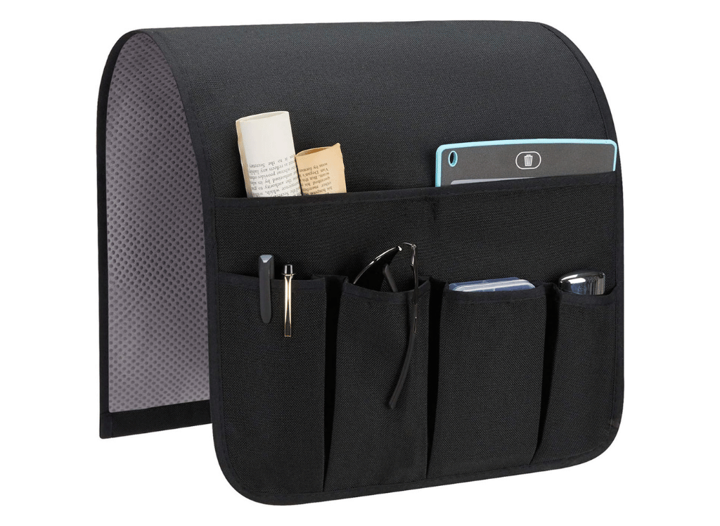 The SYSOV Sofa Armrest Organizer comes in two widths--13 inches or 19 inches, with pockets to keep all your living room essentials. You'll never have to worry about reaching out of comfort zone again when you need something within reach--just stick whatever you need into one of these handy organizer's pockets and voila! The anti-slip design ensures that it sticks around even on most occasions, while being made from linen fabric that is durable yet soft. Plus, it's wrinkle resistance and shrink-proof, so no worries there! Easy to install and applicable for any size armrests from couches and recliners to walls and bedside tables -- this adjustable remote control holder really has got you covered in every way.