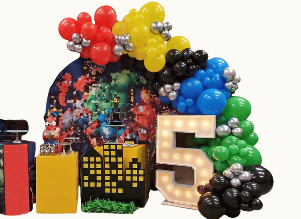 The possibilities are endless! You could set up an Obby (Obstacle course) in your backyard – just like in the game. Another fun idea is a Roblox-themed treasure hunt, where kids search for Roblox items hidden around the party area. You could even host a “Design It” fashion show where kids get to show off their Roblox costumes!