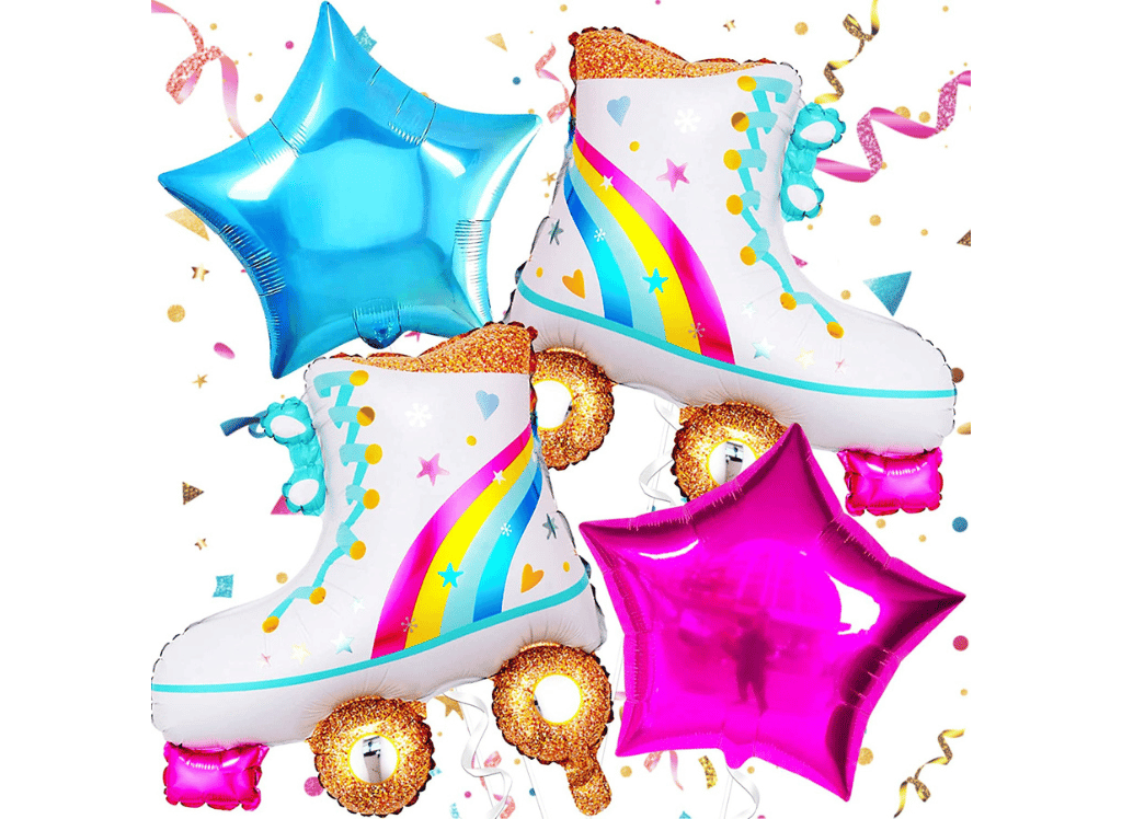 Are you looking for the perfect decorations to complete your roller skate themed party? Look no further than KatchOn's Roller Skate Balloon Set. This set of four metallic mylar balloons is sure to bring a festive touch to any event. With self-sealing valves, they are easy to inflate and deflate with the included straw and ribbon. Plus, these balloons are helium supportable so you can easily float them around the room!