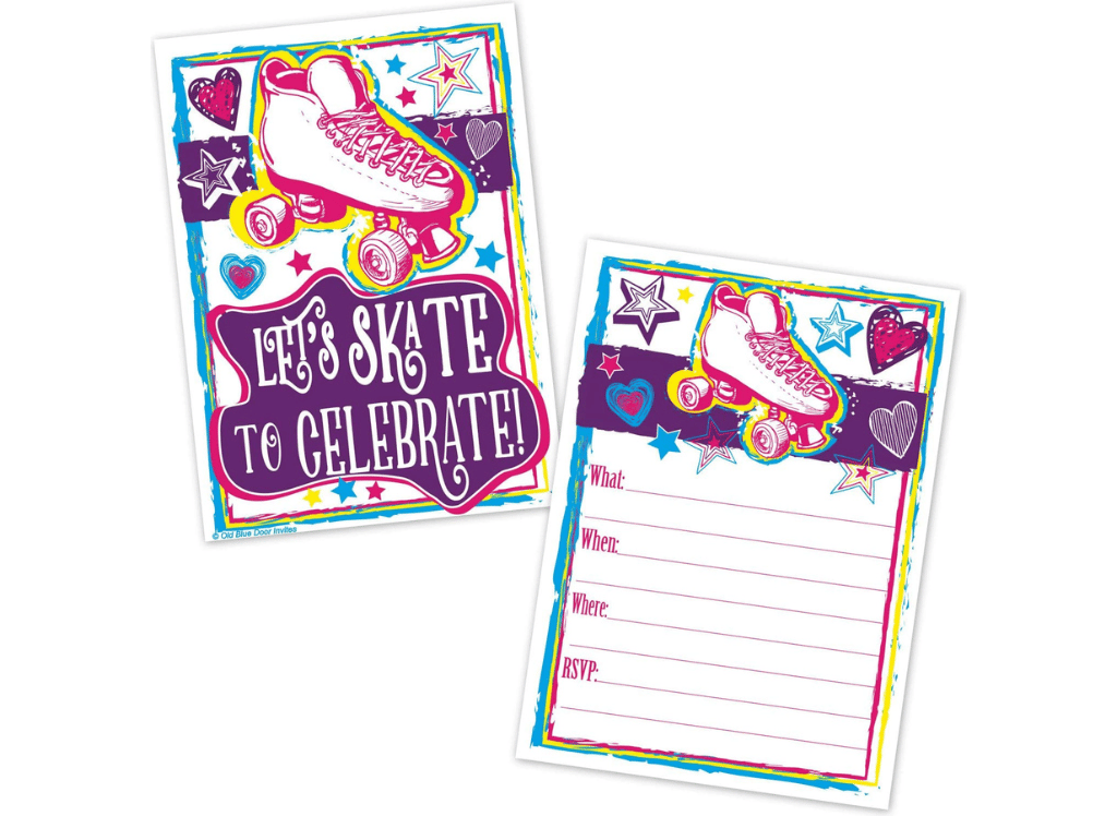 5. Old Blue Door Invites Roller Skating Birthday Party Invitations 20 Count with Envelopes