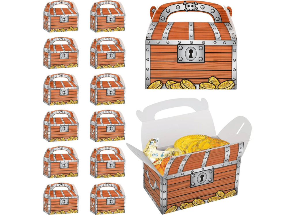 The Adorox 24 Pack Treasure Chest Party Favor Box is perfect. You can fill them with SpongeBob stickers, mini figurines, or even SpongeBob-themed candies!