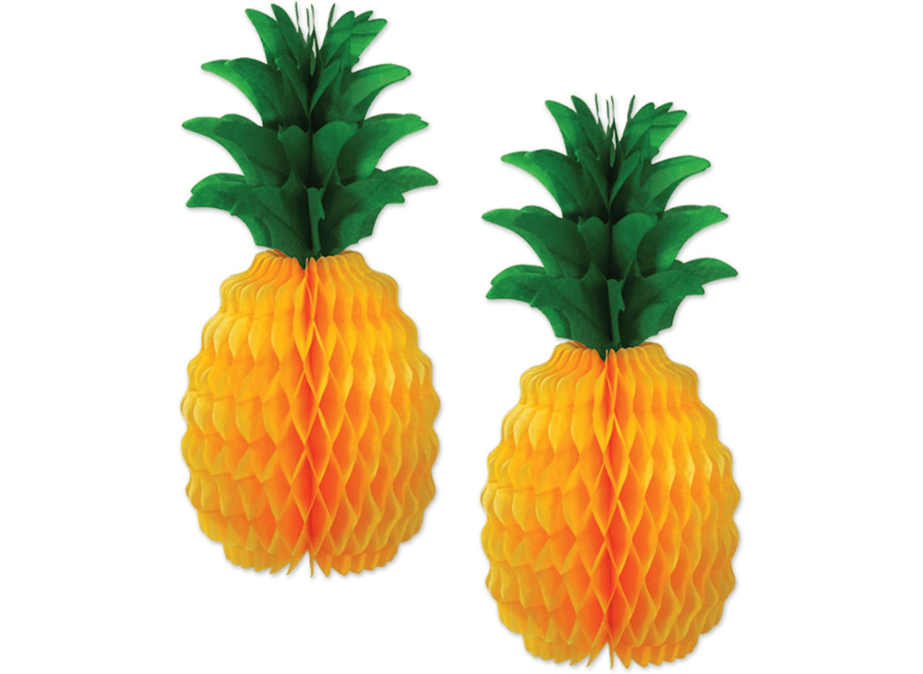 These yellow and green party centerpieces are more than just party decorations; they're a tropical invitation to fun! Each pineapple is 12 inches, made of high-quality tissue paper, and is just oozing with an infectious luau spirit. These are not just one, but TWO tickets to a beachy paradise right in your backyard. Hang them up and watch your party space transform into SpongeBob's own pineapple house!