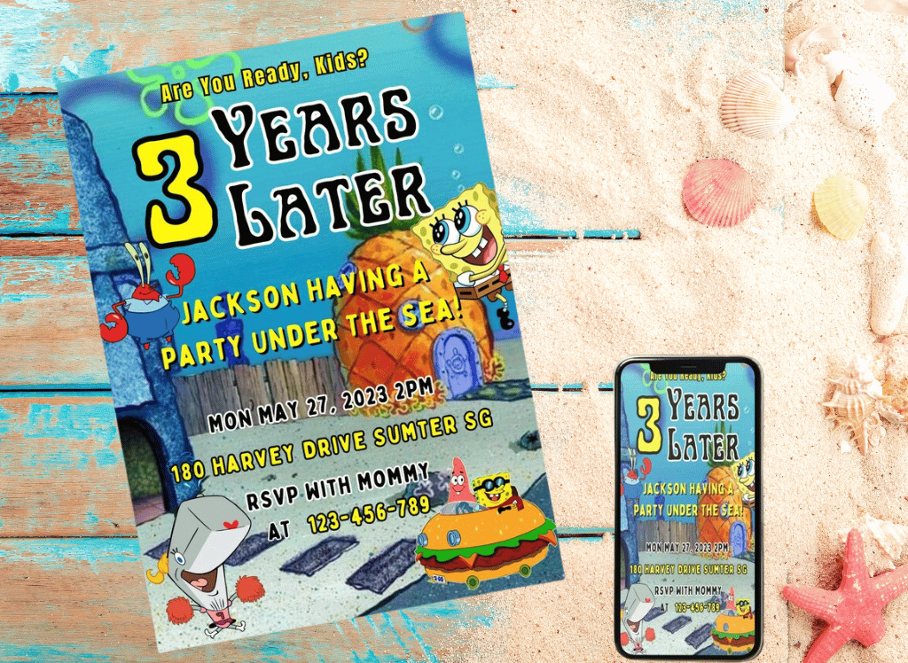 Unleash the magic of Bikini Bottom right into your living room with these DIY Digital Sponge Party Invitation! This quirky, colorful, and perfectly SpongeBob themed digital invite is your golden ticket to an undersea adventure. Designed for easy customization in Canva, it's the ultimate mobile-friendly invitation you can send via text, email, or even social media!