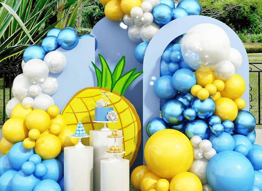 Use color! SpongeBob's world is vibrant and lively. Decorate with lots of yellow and blue balloons, tablecloths, and streamers. Our Sponge Theme Balloon Garland Arch Kit can definitely help!