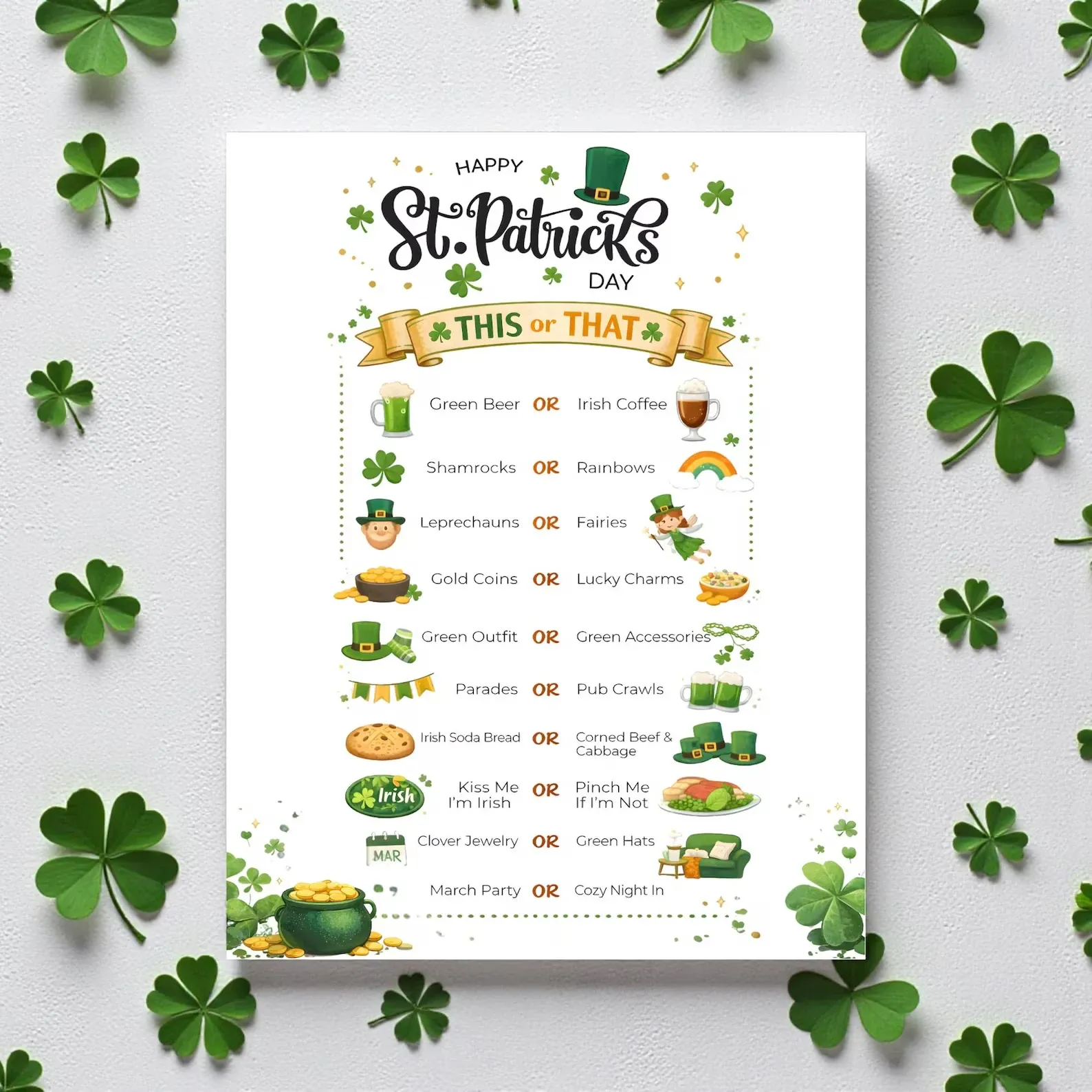 This or That gives players fun St Patrick’s Day themed choices like:
