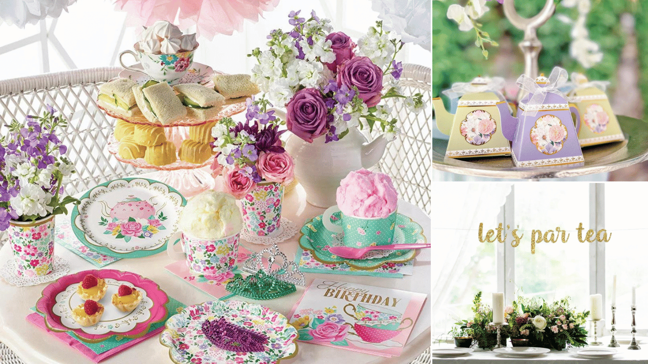 Pick colors that match your theme. Soft pink, lavender, gold, and mint green are fan favorites for tea parties.
