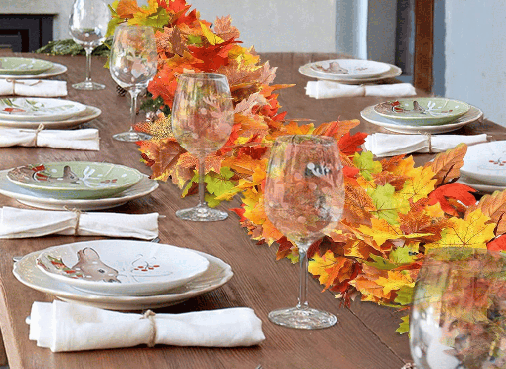 Whaline's pack of 300 artificial autumn maple leaves offers endless opportunities for creative table and venue decor. With six assorted colors, each shade captures the vibrant beauty of fall. Use them to scatter across tables, fill vases, or even create your own custom centerpieces. These leaves provide the flexibility to get crafty and add a personal touch to your holiday setup. Reuse them every year for a consistent touch of elegance.