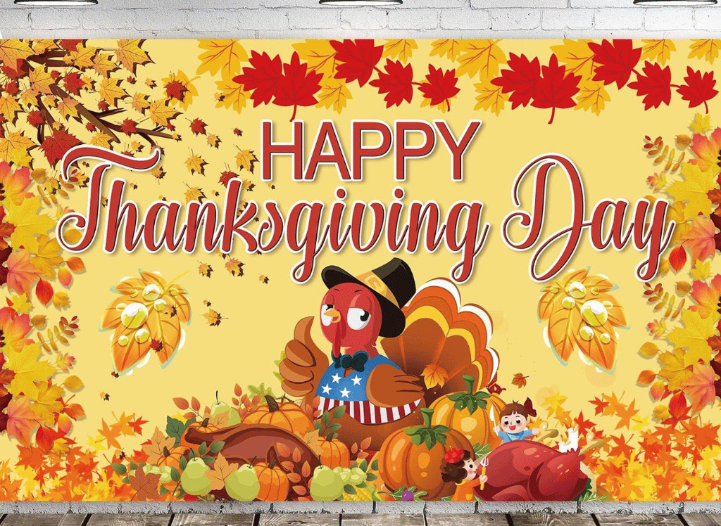 Make a statement with the Happy Thanksgiving Day Fabric Poster, an eye-catching backdrop that measures 43.3"x70.8". Constructed from high-quality ECO-friendly fabric, this poster is not only visually appealing but also durable and washable. The added hanging rope provides ease of display. Perfect for creating picture-perfect moments and setting the scene for your Thanksgiving party, it adds upscale decor with minimal effort.
