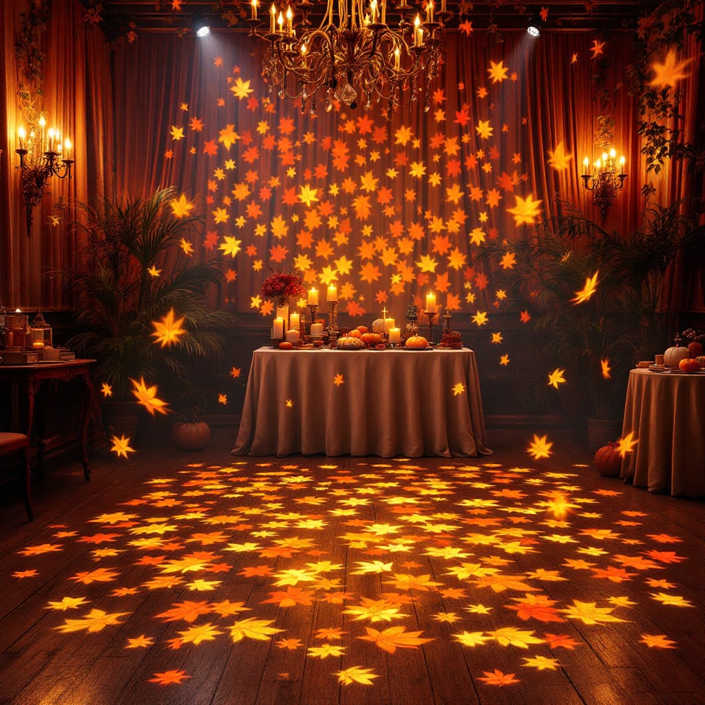 If you want to move beyond traditional lighting and add a glamorous, personalized touch, a gobo projector is a fantastic option. A gobo is a small stencil placed over a light source to project a specific image, pattern, or text onto a surface. For a fall party, you could project patterns of falling leaves, intricate branch designs, or even a custom monogram onto a wall, floor, or the side of a tent. Gobo projectors are also perfect for Halloween, allowing you to create spooky lighting scenes with themed images like jack-o'-lanterns, ghosts, or bats for a festive atmosphere.