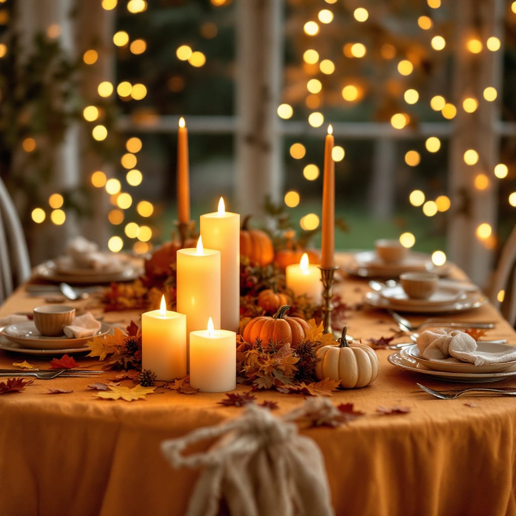 Scatter them across tables, line them along walkways, or place them inside decorative holders and pumpkins. Flameless LED candles can be seamlessly integrated into your fall decor, enhancing the seasonal atmosphere with their cozy glow and complementing other autumn-themed accents. You can create beautiful, worry-free centerpieces or add a warm glow to every corner of your event space. Many LED candles also come with timers and remote controls, allowing you to easily manage them throughout the evening. They are perfect for creating that cozy, intimate feeling essential for any fall gathering.