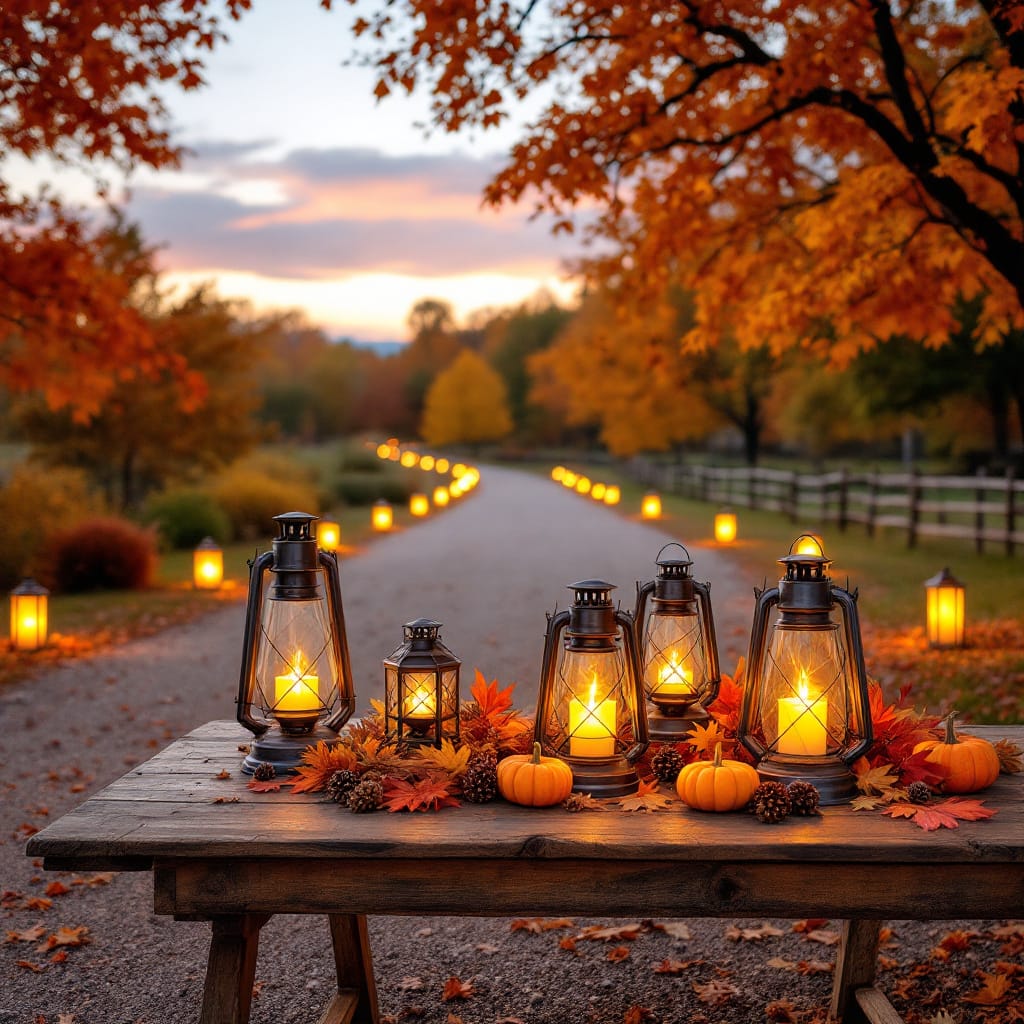 Modern versions often use LED technology to replicate the look of a flame, offering a safer and more convenient alternative. LED strip lights are another versatile option for adding festive lighting to rustic or outdoor fall settings. Whether you choose authentic oil lamps or their electric counterparts, these lanterns provide a substantial, decorative element that enhances the cozy, nostalgic mood of a fall celebration.
