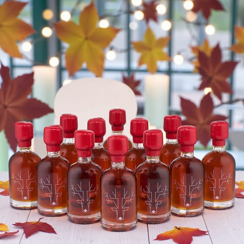 Evoke the sweet flavors of autumn with mini bottles of high-quality maple syrup. This favor is a delightful sweet treat that’s both practical and elegant. It’s a perfect fall wedding favor, bringing a touch of rustic charm to your table setting. Guests can enjoy it with their pancakes, waffles, or even in their morning coffee.