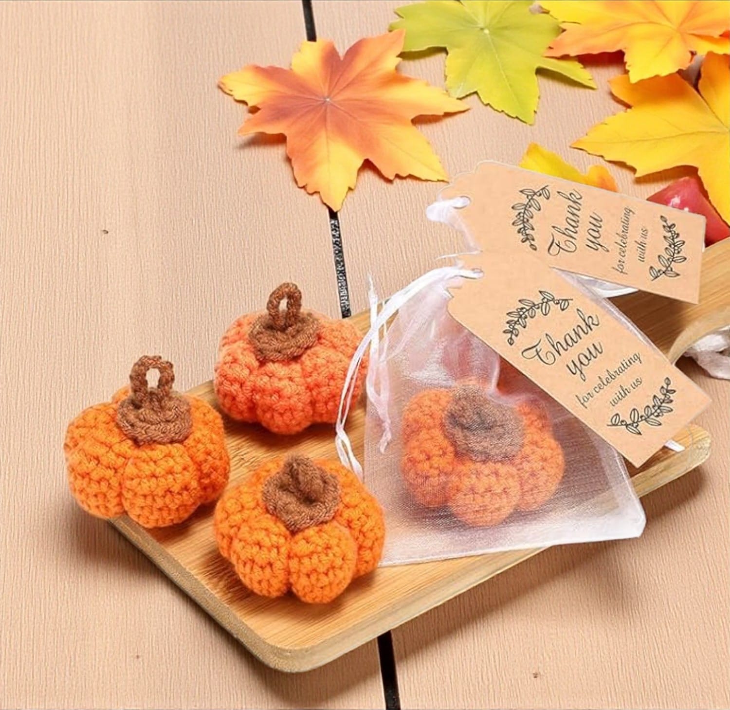 Package the spices in a small muslin bag tied with a ribbon and a custom tag that includes instructions. This favor is perfect for creating a cozy atmosphere and is a wonderful way to extend the warmth of your autumn celebration.