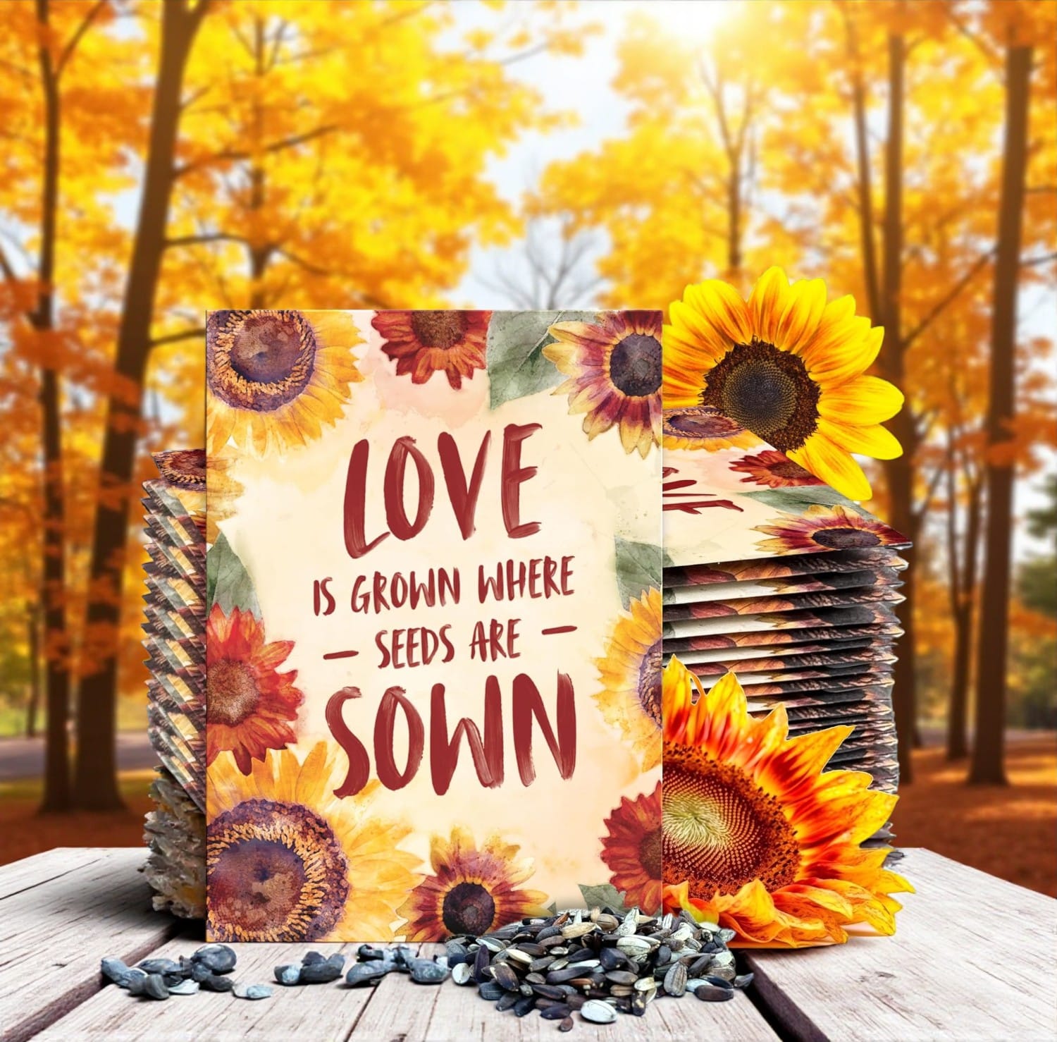 Give a gift that grows. Custom seed packets are a unique and eco-friendly party favor. Choose seeds for fall-blooming flowers like chrysanthemums or asters. This thoughtful favor symbolizes growth and new beginnings, making it ideal for a wedding or bridal shower.
