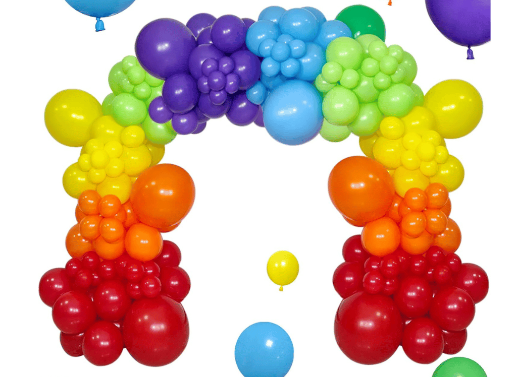 Paint your party in vibrant hues with our Rainbow Balloon Arch Kit! This 111-piece set includes an assortment of red, orange, yellow, green, blue, and purple balloons in various sizes, complete with glue dots and ribbons. Create a jaw-dropping centerpiece that will make every moment picture-perfect.