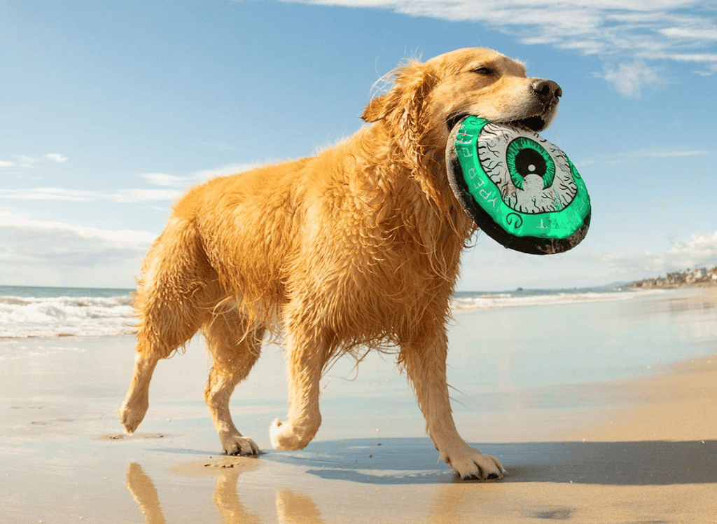This frisbee is made of a lightweight, buoyant material that allows for long range throws and interactive play at the beach, lake or pool. It also comes in fun bright colors and unique designs to make it easy to spot among bushes, leaves, grass and snow. The Eyeball Flippy Flopper measures 9 inches in diameter and each pack includes one dog frisbee.