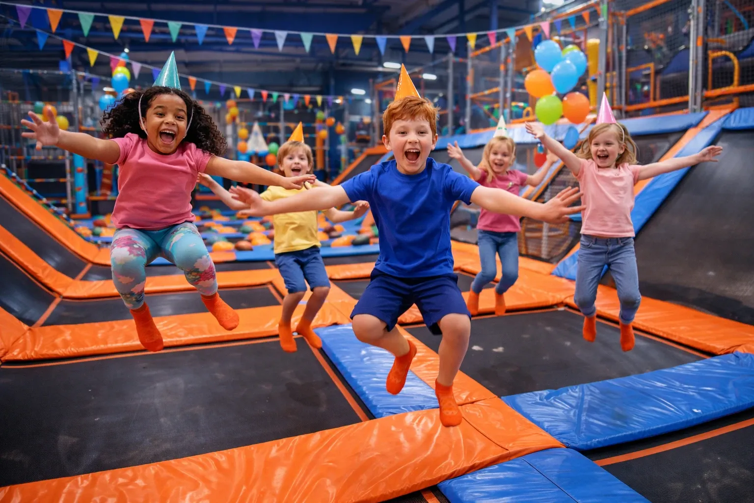 For families wanting minimal prep, a trampoline park or indoor trampoline park is one of the most popular ideas for winter birthday parties. With jumping zones, climbing structures, and dodgeball courts, kids burn off energy fast.
