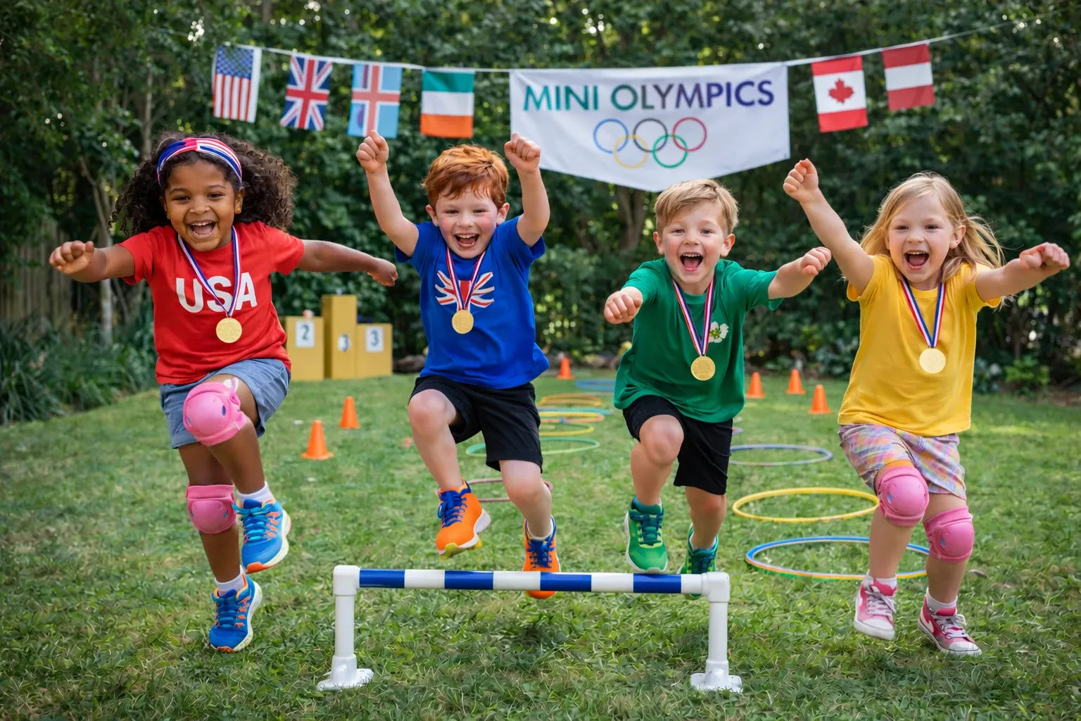 Game favorites: Timed relays, freeze poses, and creative scoring. Don't forget to check out 🥇 Top 5 Olympic Themed Party Gems So Every Guest is a Winner!🏆